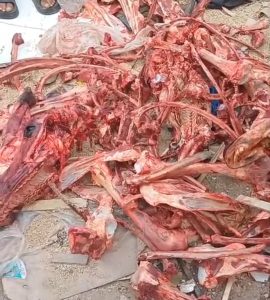 ذبح الحمير والبغال بطريقة سرية، ومن تم تصريف لحومها في الأسواق المحلية،حيت خداع المستهلكين ببيعها كلحوم بقر وغنم أصلية.