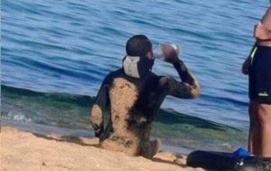 مساء يوم الإثنين، وفي لحظة حاسمة، تمكن أحد مستخدمي الدراجات المائية (الجيت سكي) من العثور على الشاب في حالة إنهاك شديد، حيث قام بإنقاذه فورًا ونقله إلى الشاطئ.