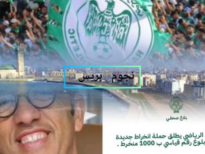 نجوم بريس الدار البيضاء – أعلن نادي الرجاء الرياضي، أحد أعرق الأندية المغربية، عن إطلاق حملة انخراط جديدة طموحة تستهدف الوصول إلى رقم قياسي يبلغ ألف منخرط جديد، في خطوة تهدف إلى تعزيز مشاركة الجماهير في قرارات النادي.
